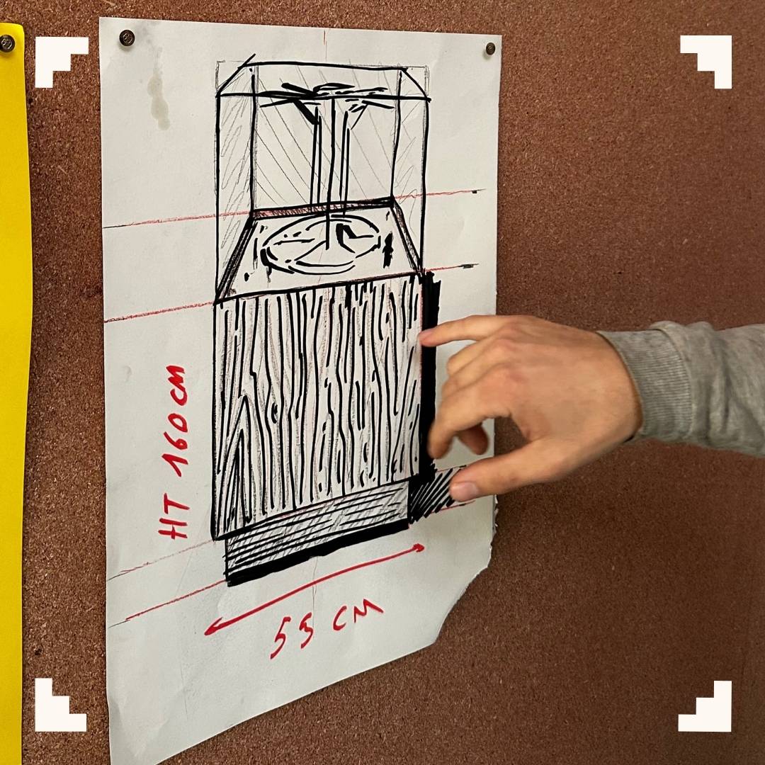 Il emmène à Fructôse plusieurs projets, dont une proposition de sculpture activable conçue pour une exposition à l’église Sainte-Madeleine de Lille — désaffectée depuis 1989 et aujourd’hui transformée en lieu d’exposition. Ce projet s’appuie sur des formes existantes, comme le prie-Dieu ou le mobilier d’église, ainsi que sur leur symbolique, pour interroger des enjeux à la fois religieux, politiques et performatifs.